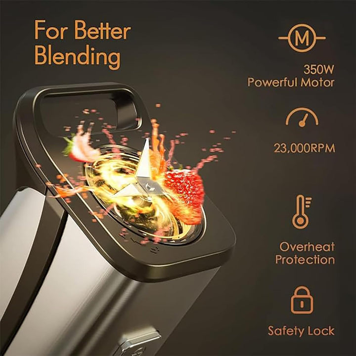 - 【Frische Drinks auf Knopfdruck】 Mit dem 350W motor und 25.000 U/min zaubert der mini standmixer blender in nur 30 sekunden köstliche smoothies, proteinpulver, gemüse, nüsse und babynahrung. geniessen sie frische drinks jederzeit und überall!