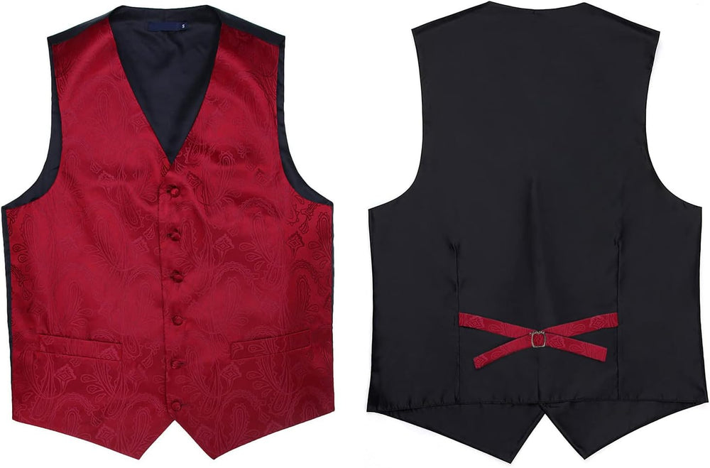 Enlision Herren Paisley Floral Jacquard Weste & Krawatte und Pocket Square Weste Anzug Set 4XL C-Bur
