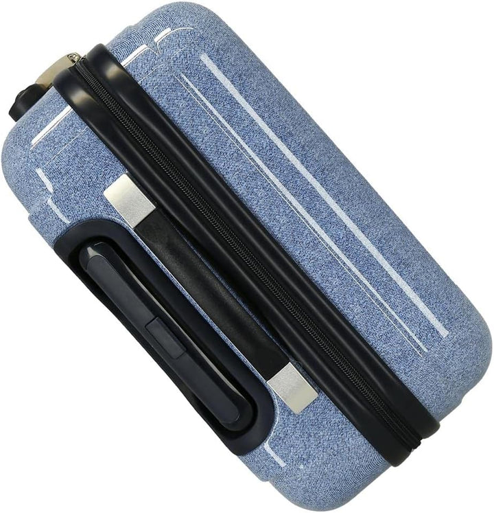 • Kabinentrolley 55 cm x 38 cm x 20 cm (Rollen und Griff im Lieferumfang enthalten). Er hat ein Fassungsvermögen von 34 l und wiegt 2,6 kg. Hergestellt aus ABS, einem steifen und leichten Material.
