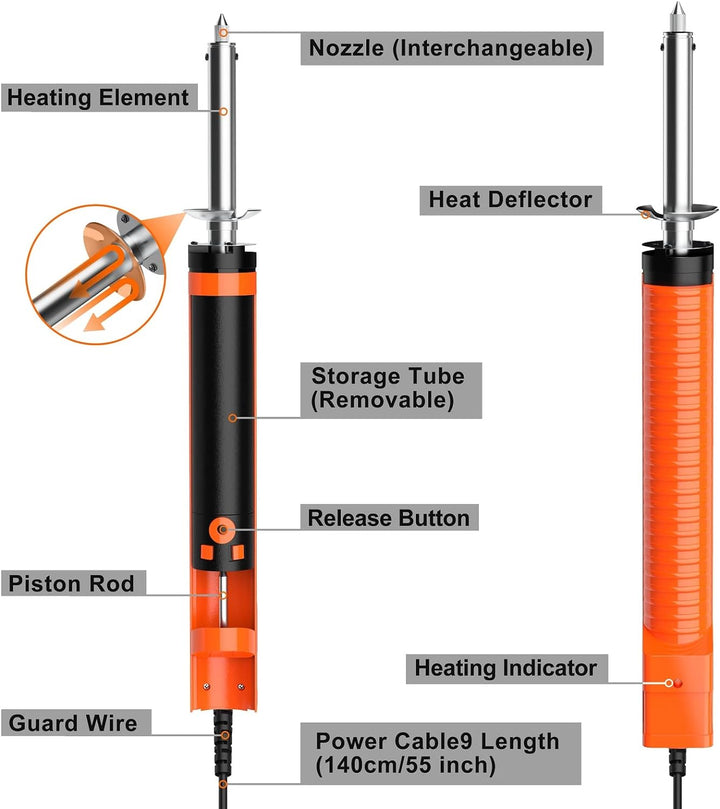 - 【Lötkolben und Entlöten in einem】Die Entlötpumpe ist eine Kombination aus Lötkolben und Entlöten, die ein kontinuierliches Entlöten mit einer Hand geniessen kann;