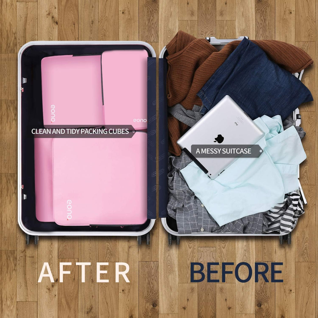 - Drücken um zu entzücken: Kleidung im Koffer zerknittert oft. Die Eono Reisewürfel verhindern, dass die Kleidung verrutscht, so dass sie kaum eine Knitterfalte sehen werden, wenn Sie sie auspacken.