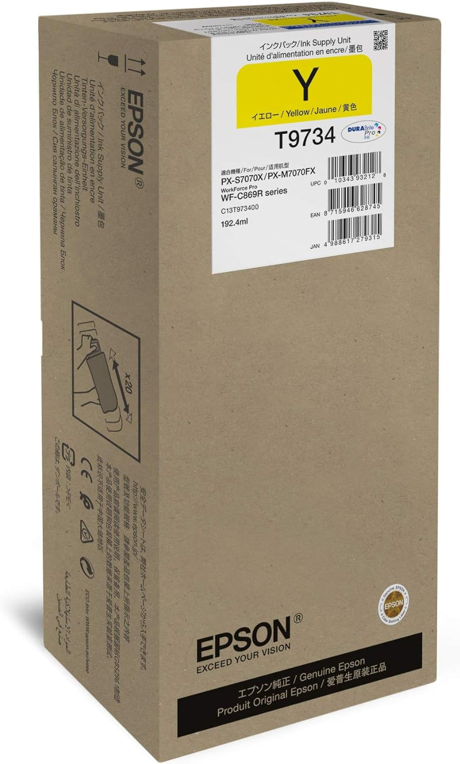 Epson C13T973400 passend für WFC869R Tinte GELB XL 192ml 22.000 Seiten