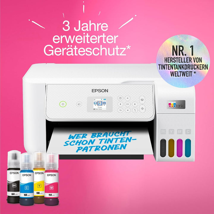 - Endlich drucken ohne Patronen - EcoTank ermöglicht komfortables Drucken zu Hause - Die grossvolumigen Tintentanks ermöglichen ein unkompliziertes Nachfüllen - Da die Tintenflaschen über ein Schlüssel-Schloss-Prinzip funktionieren, kann nur die