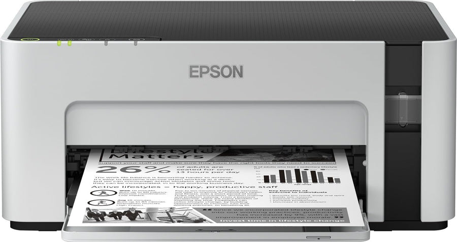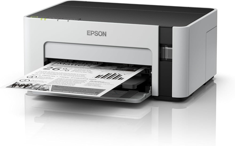 - Lieferumfang: EcoTank ET-M1120, Tintenflasche (120 ml, schwarz), Treiber und Hilfsprogramme (CD), Stromkabel, Aufstellanleitung, Garantiedokument