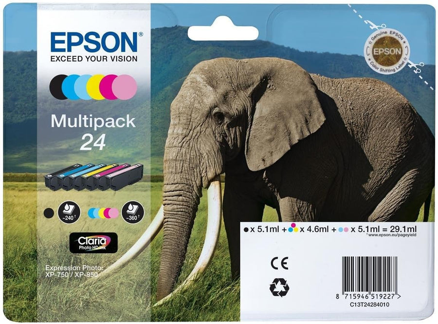 Epson Original T2428 Elefant, Claria Photo HD Tinte (hochauflösende Fotodrucke, Multipack 6-farbig)