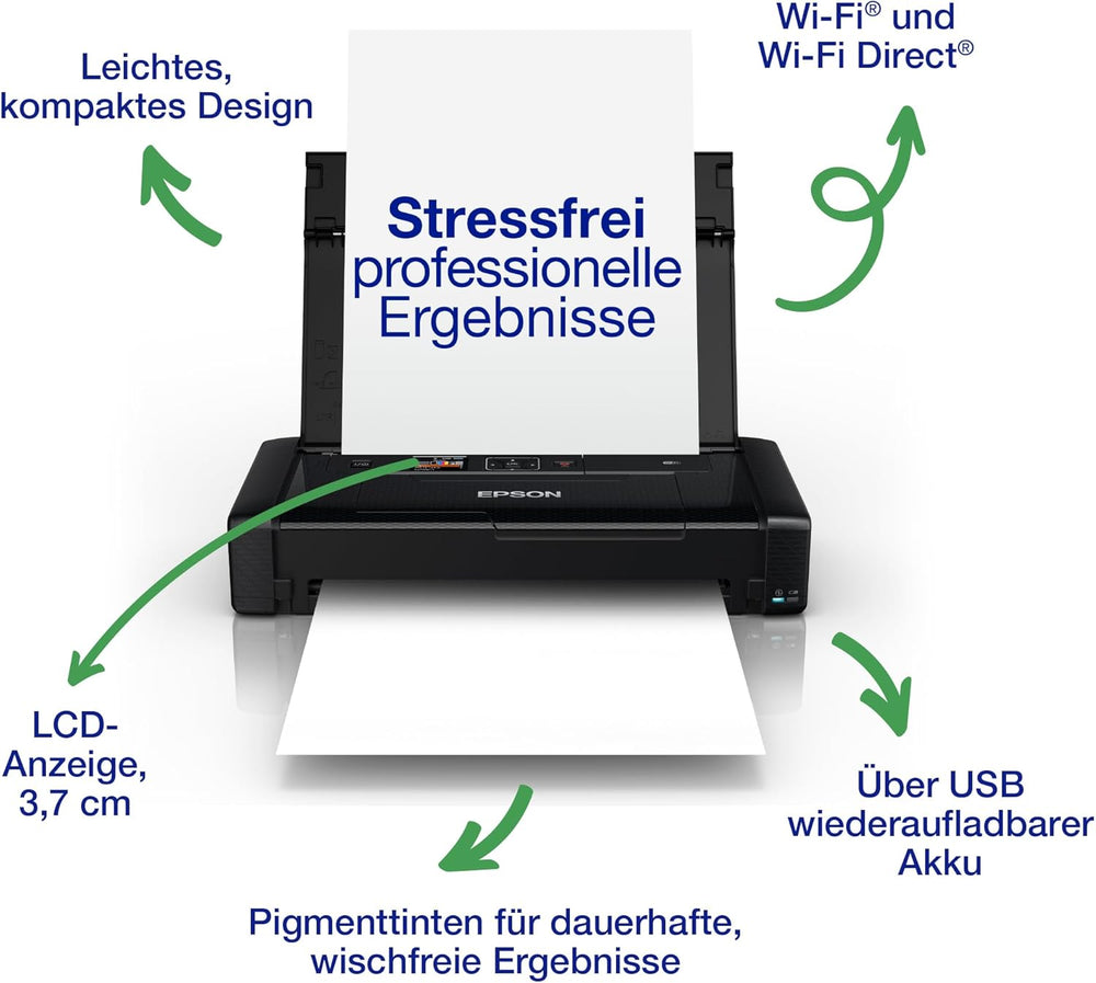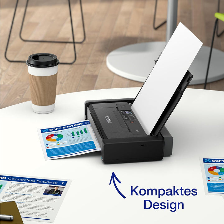 - Kleinster und leichtester kabelloser DIN A4-Tintenstrahldrucker von Epson (309 x 154 x 61 mm)