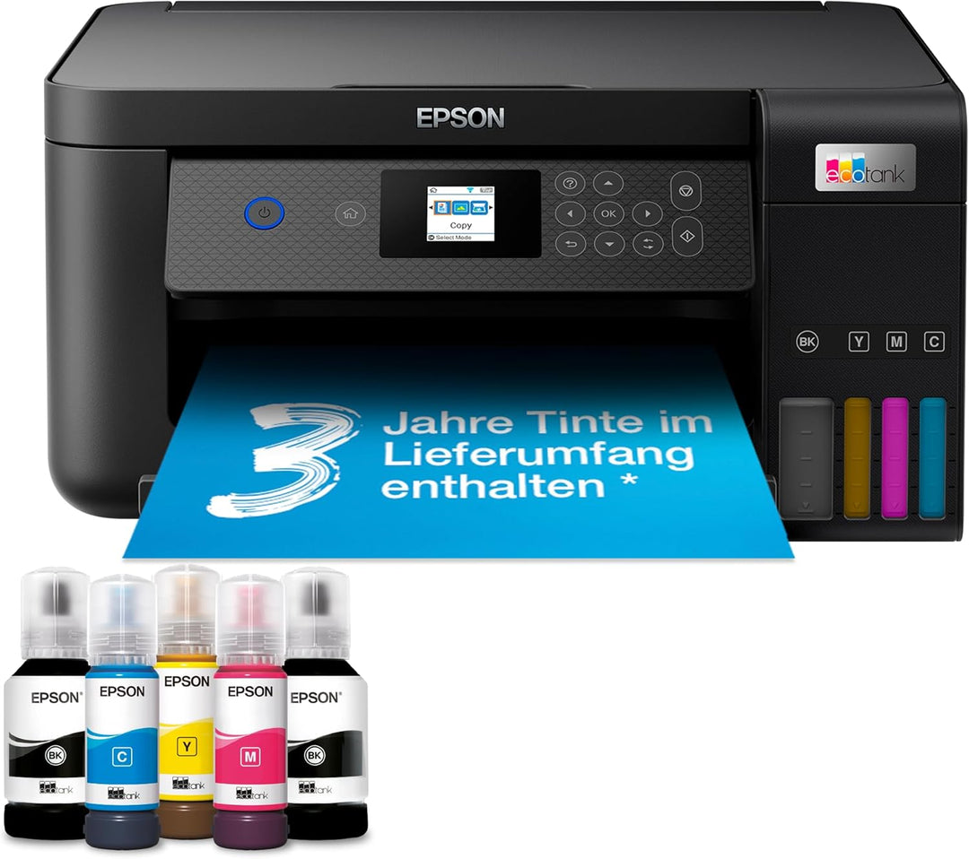 - Weiter sparen - Mit diesem sparsamen Drucker reduzieren Sie Ihre Tintenkosten um bis zu 90 %* - Im Lieferumfang enthalten ist eine zusätzliche Tintenflasche (Schwarz) für einen Tintenvorrat für bis zu 3 Jahren* - Ein Tintenflaschensatz reicht für