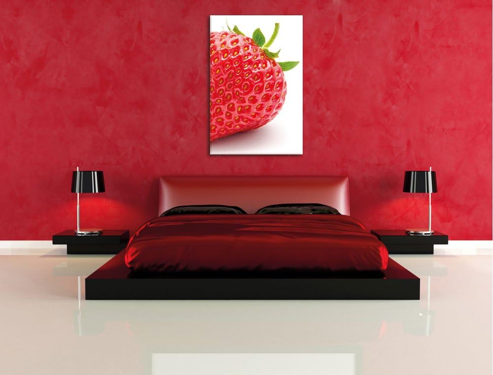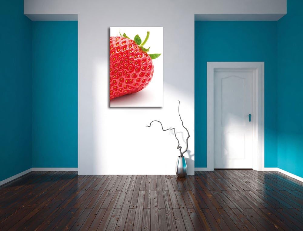 Erdbeere Strawberry Obst, Format: 100x70 auf Leinwand, XXL riesige Bilder fertig gerahmt mit Keilrah