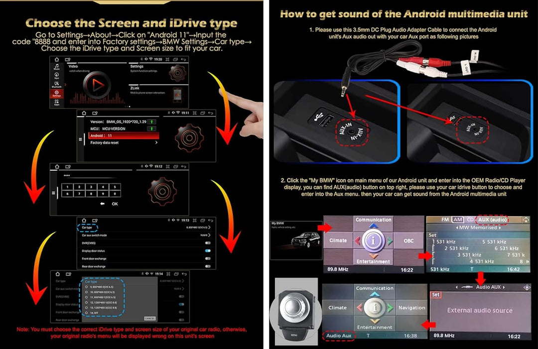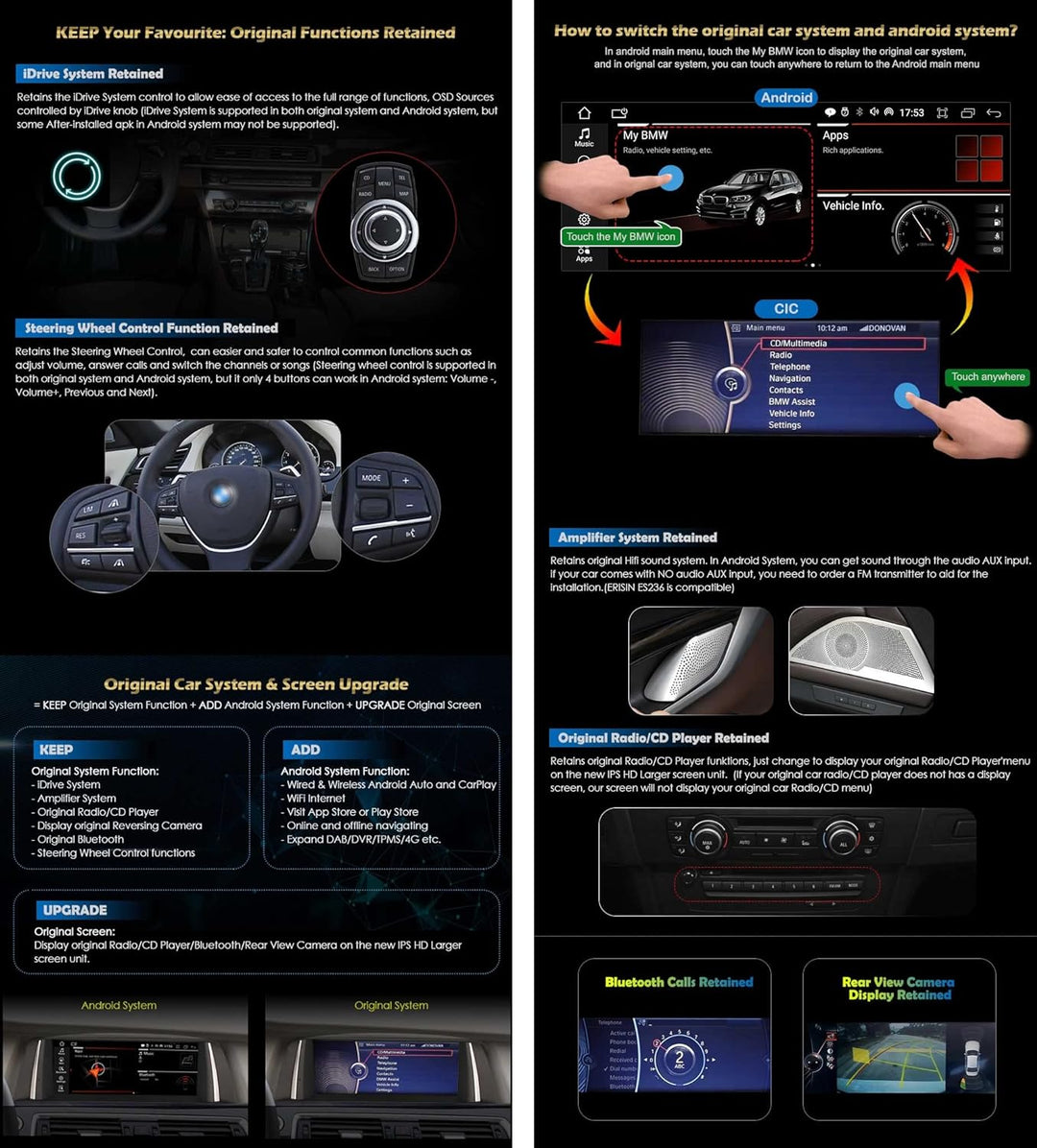 - ✪【Originalsystemfunktionen Beibehalten】Original-iDrive-System beibehalten, einfacher Zugriff auf alle Funktionen (wird nach der APK-Installation nicht unterstützt); behält das ursprüngliche HiFi-Soundsystem bei; behält die ursprüngliche