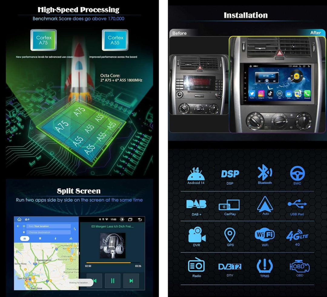 - ✪【Schnelles & Reaktionsschnelles Android 11-System】9-Zoll-Autoradio für Mercedes Benz A/B Klasse Viano Vito Sprinter VW Crafter mit dem leistungsstarken neuesten Android 11.0-System können Sie eine reibungslose und reaktionsschnelle