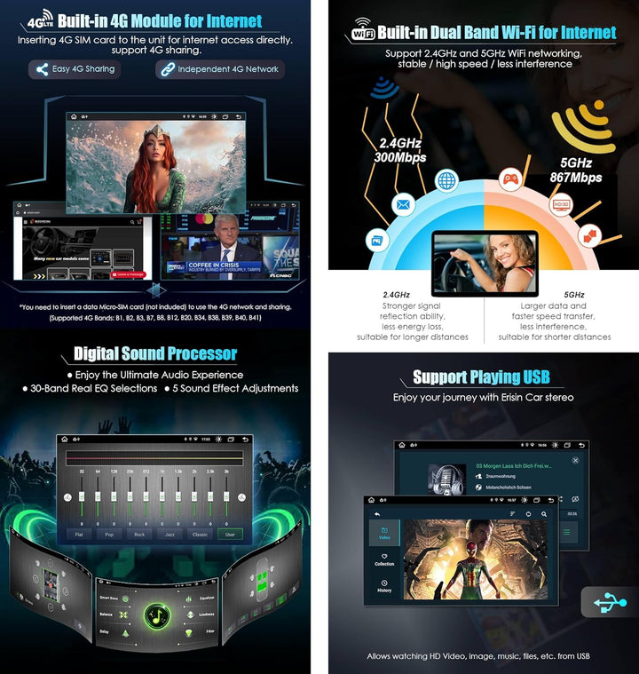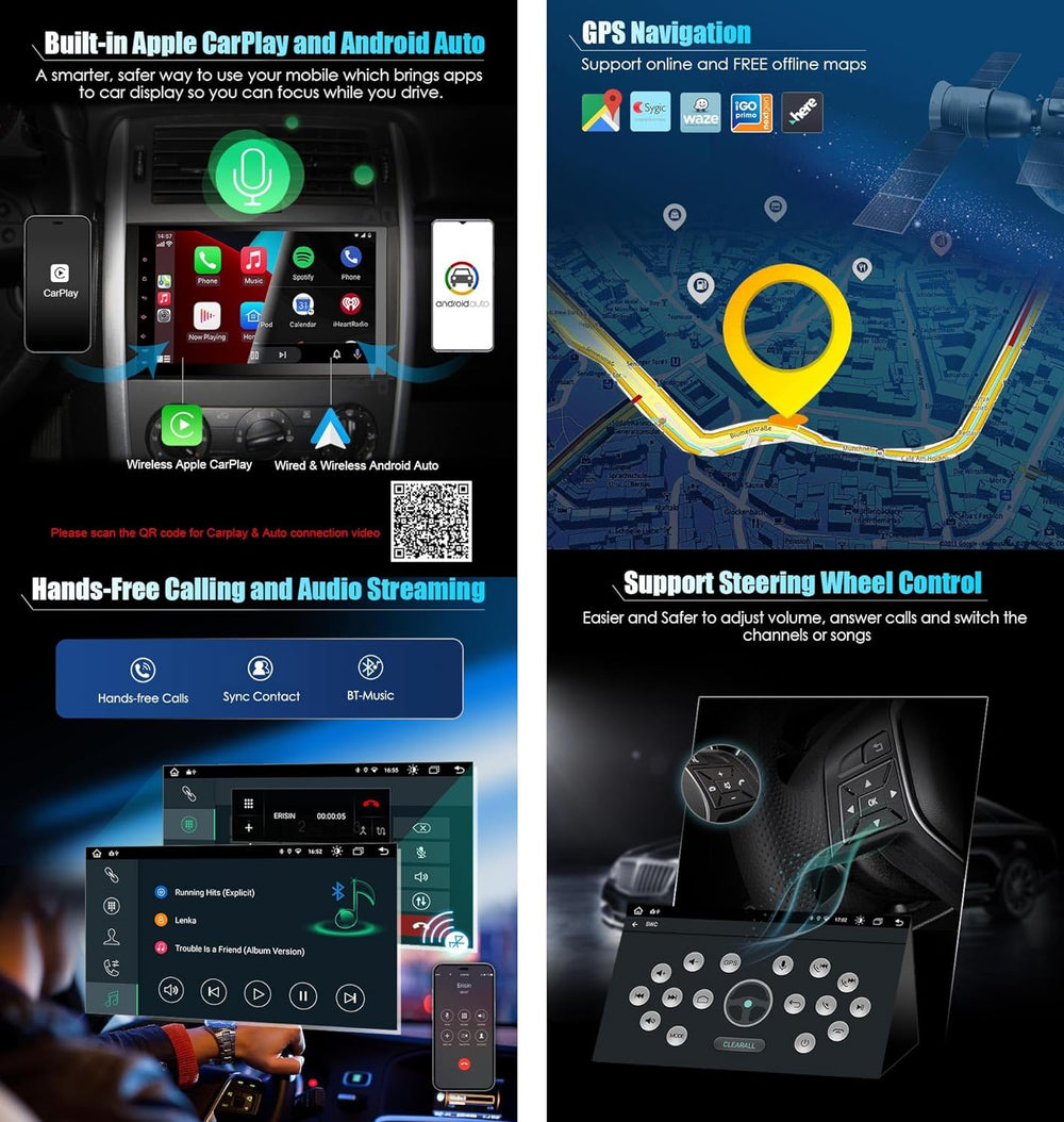 - ✪【Kabellos CarPlay & kabelgebundenes Android Auto & DSP】Eingebauter CarPlay/Android Auto On-Board-Chip. Benutzer können damit telefonieren und Musik hören. Verbinden Sie einfach Ihr iPhone über Bluetooth mit diesem Gerät, um CarPlay zu