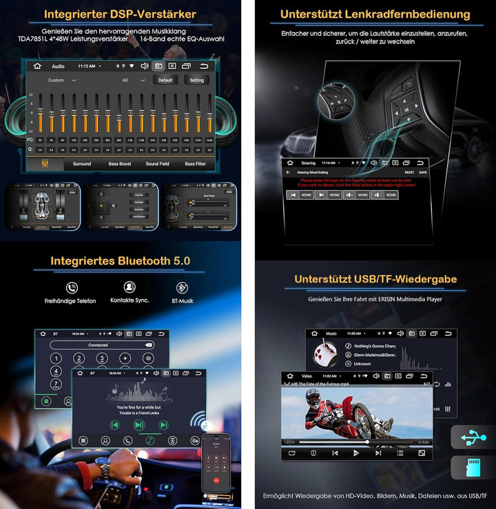 - ✪【Multifunktionen】Integrierte Bluetooth 5.0-Modul, können Sie Ihre Hände frei und machen Sie Ihr Fahren sicherer; Unterstützung Lenkradsteuerung, können Sie diese Funktion verwenden, um Ihre Musik oder Lautstärke im Auto zu steuern;