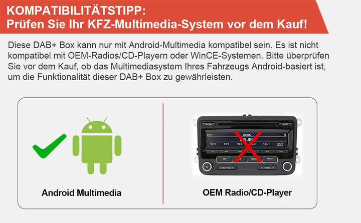 - ▲ Plug & Play: USB-Port Stromversorgung für DAB+ Box und die Anschlussantenne, kein zusätzliches Stromkabel erforderlich, 3m Antennenkabel
