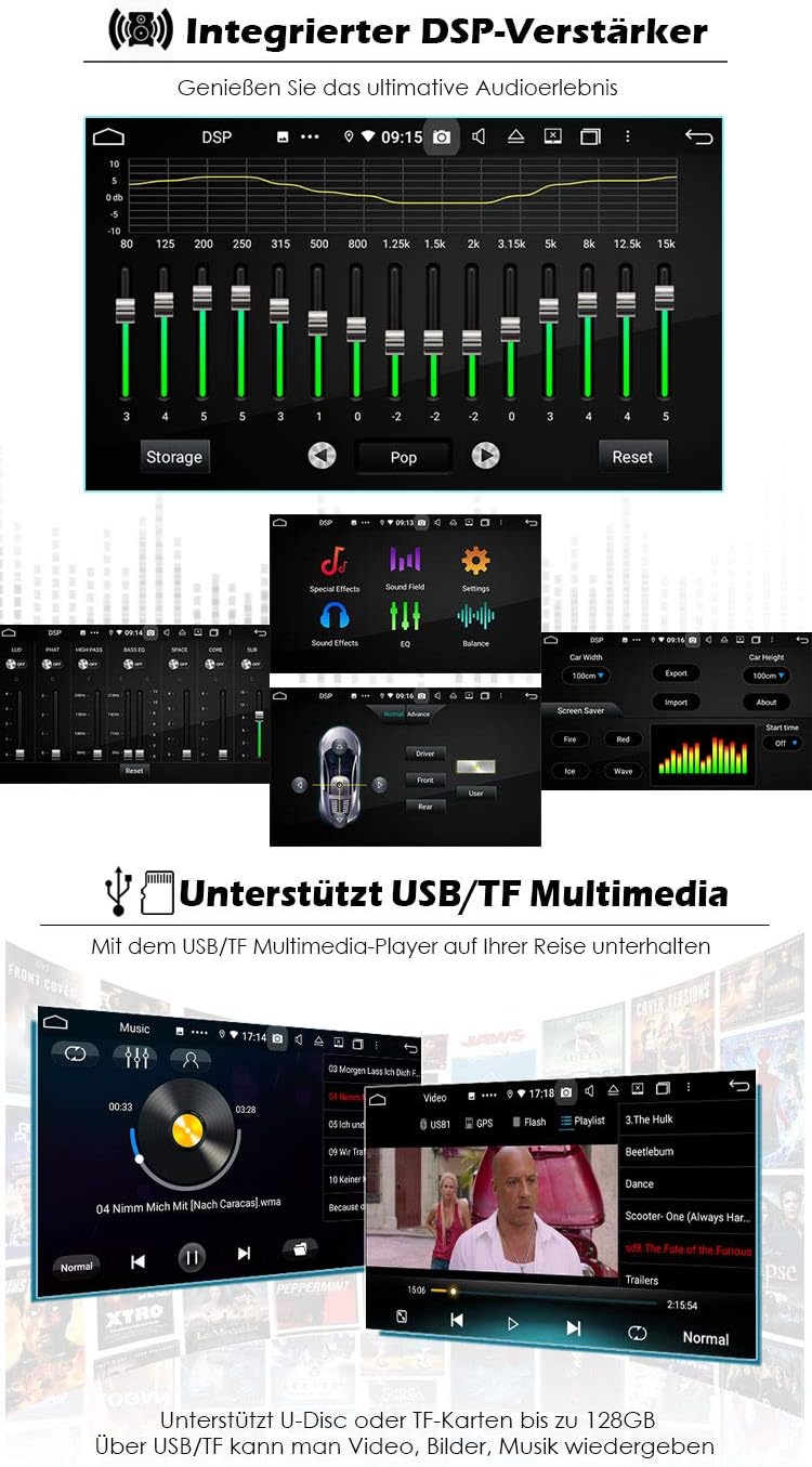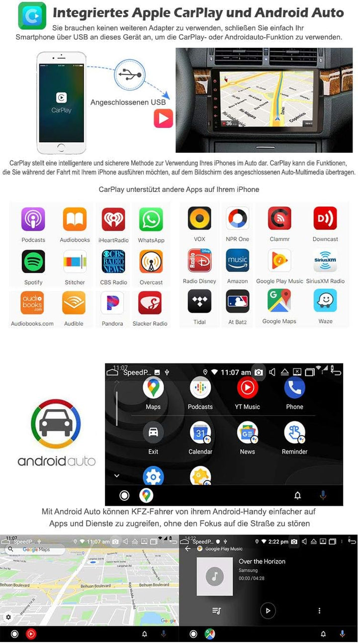 - ✪【CarPlay & Android Auto & DSP】 Eingebauter CarPlay/Android Auto On-Board-Chip. Kompatibel mit Apple CarPlay und Android Auto. Mit dem Autoradio können Benutzer telefonieren und Musik hören. Das Android-Autoradio verfügt über einen integrierten