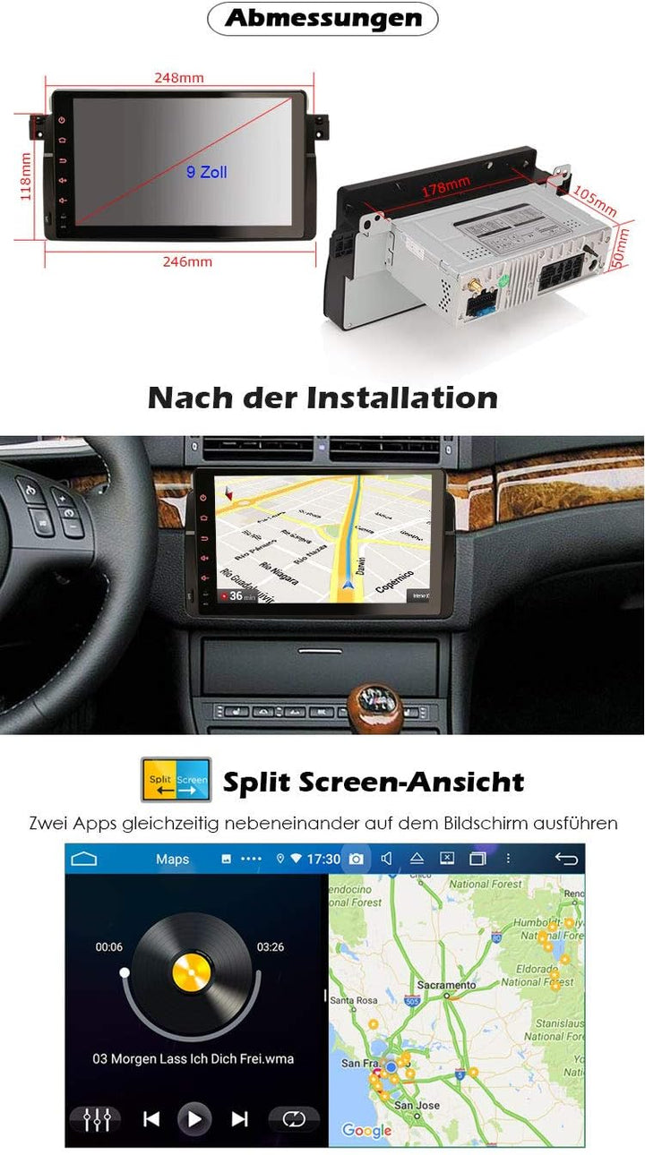 - ✪【Kompatibilität】Autoradio passend für BMW 3 Series E46 1998-2001 with Old 17-Pin connector,BMW 3 Series E46 2002-2006 with new 40-Pin connector,BMW M3 1998-2006 and BMW E46 3er 318 320 325,Rover 75 1999~2004 and MG ZT 2001~2004. Die Grösse der