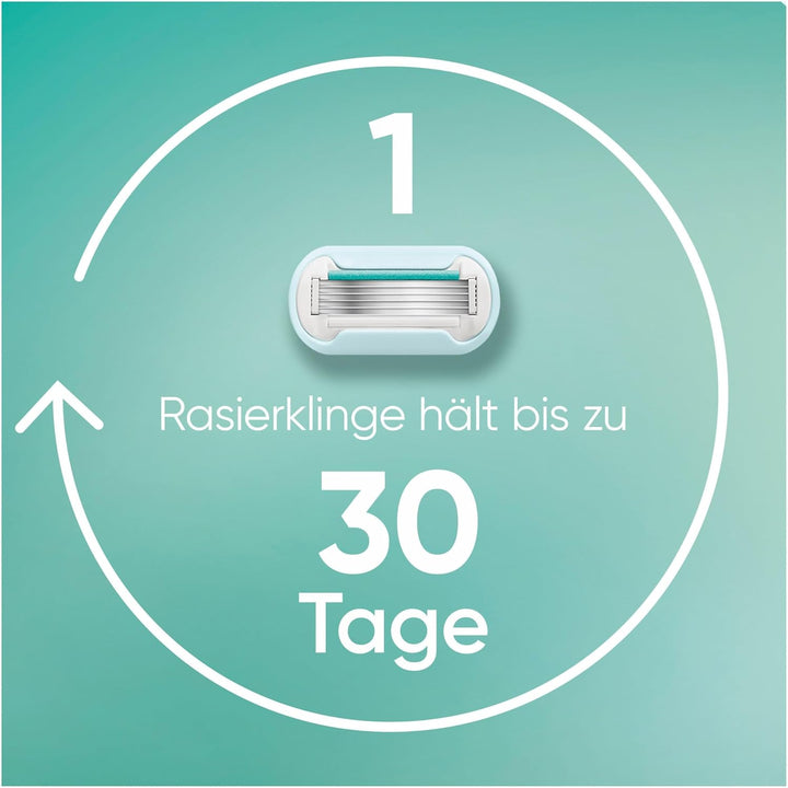 • Robustes Klingendesign für längere Verwendbarkeit: Die Rasierklingen reichen bis zu 30 Tage* (*bei zwei Rasuren pro Woche), sind mit einem Feuchtigkeitsband und SkinElixir für besseren Gleiteffekt ausgestattet und bieten einen Hauch von Aloe Vera