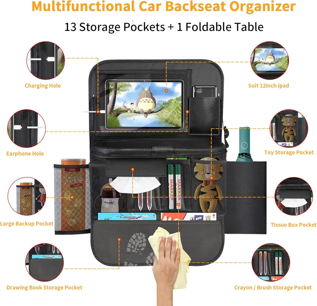 • 🚗【Mit 13 Aufbewahrungstaschen】 Dieser Auto Organizer Kinder verfügt über 13 separate Fächer in verschiedenen Grössen und 1 Klapptisch, um Ihnen mehr Stauraum zu bieten und können Sie Ihr Auto sauber und ordentlich halten. Autositz Organizer