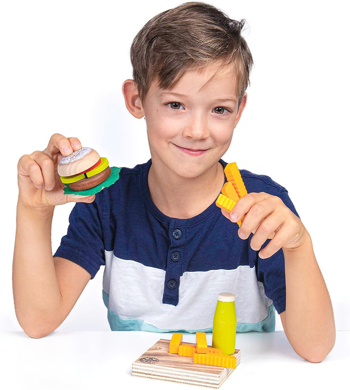 - Veganes Hamburger-Rollenspiel: Mit diesen Lebensmitteln aus streng FSC-zertifiziertem Holz werden Kinder jede Menge Spass daran haben, eine andere Geschichte zu schaffen, die Sie selbst leben können