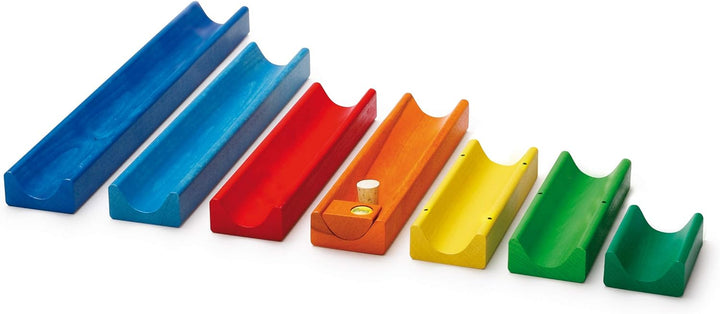 - Lieferumfang: 7 Murmelbahnen und 4 Sandspatel aus Holz, 1 Verschluss-Stopfen aus Kork, 3 Murmeln aus Holz und Glas
