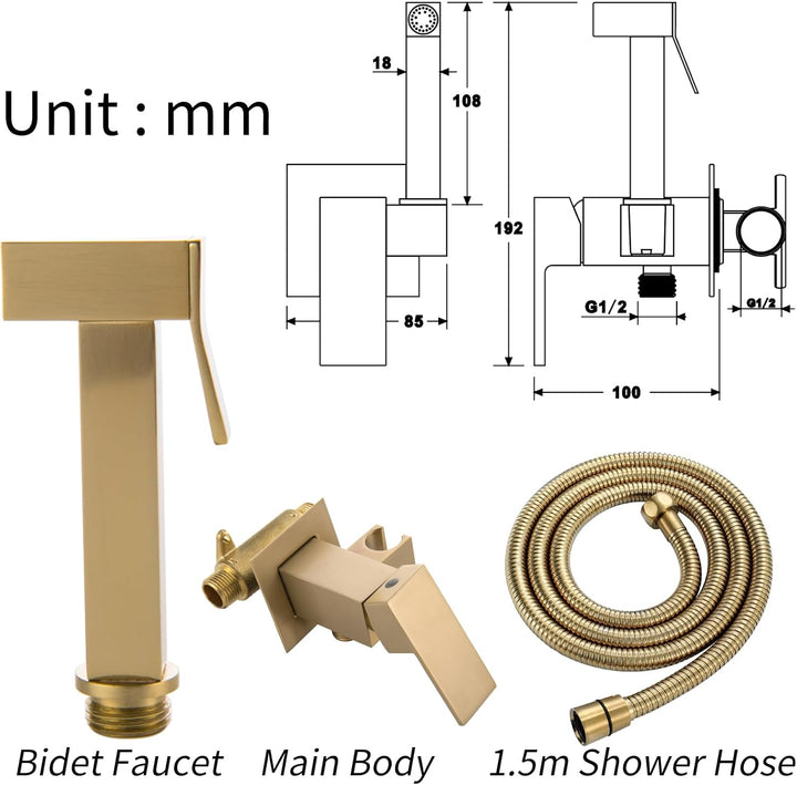 - ❤ 1,5 M Edelstahlschlauch: Dieses Bidet-Sprühgerät verfügt über einen 1,5 Meter langen Edelstahl-Duschschlauch, der nach Belieben bewegt werden kann, wodurch die Reinigung der Toilette und der Toilettenecken erleichtert wird