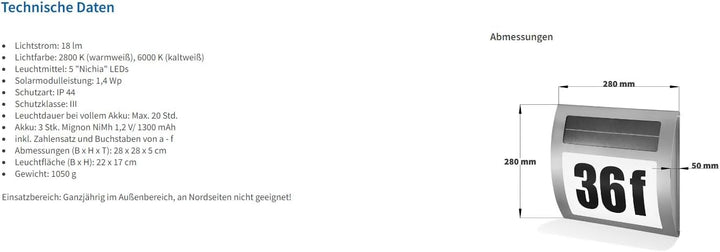 - Esotec Wave 102035 Solar-Hausnummernleuchte Warmweiss Edelstahl