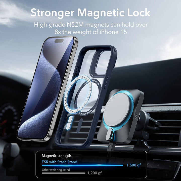 - Stärkerer Magnetverschluss: Starke integrierte Magnete mit einer Haltekraft von 1.500 g ermöglichen ein schnelleres, einfacheres kabelloses Laden vor Ort und zum Mitnehmen und einen sicheren Verschluss jedes MagSafe-Zubehörs