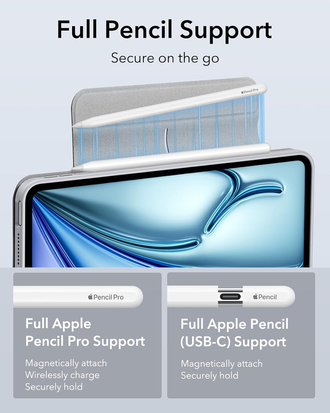 - Unterstützt Pencil Pro und Pencil (USB-C): Diese iPad Pro-Hülle unterstützt den Pencil Pro vollständig und verfügt über eine vertiefte Seitenrille zum magnetischen Laden und einen Magnetverschluss, um deinen Pencil sicher zu halten