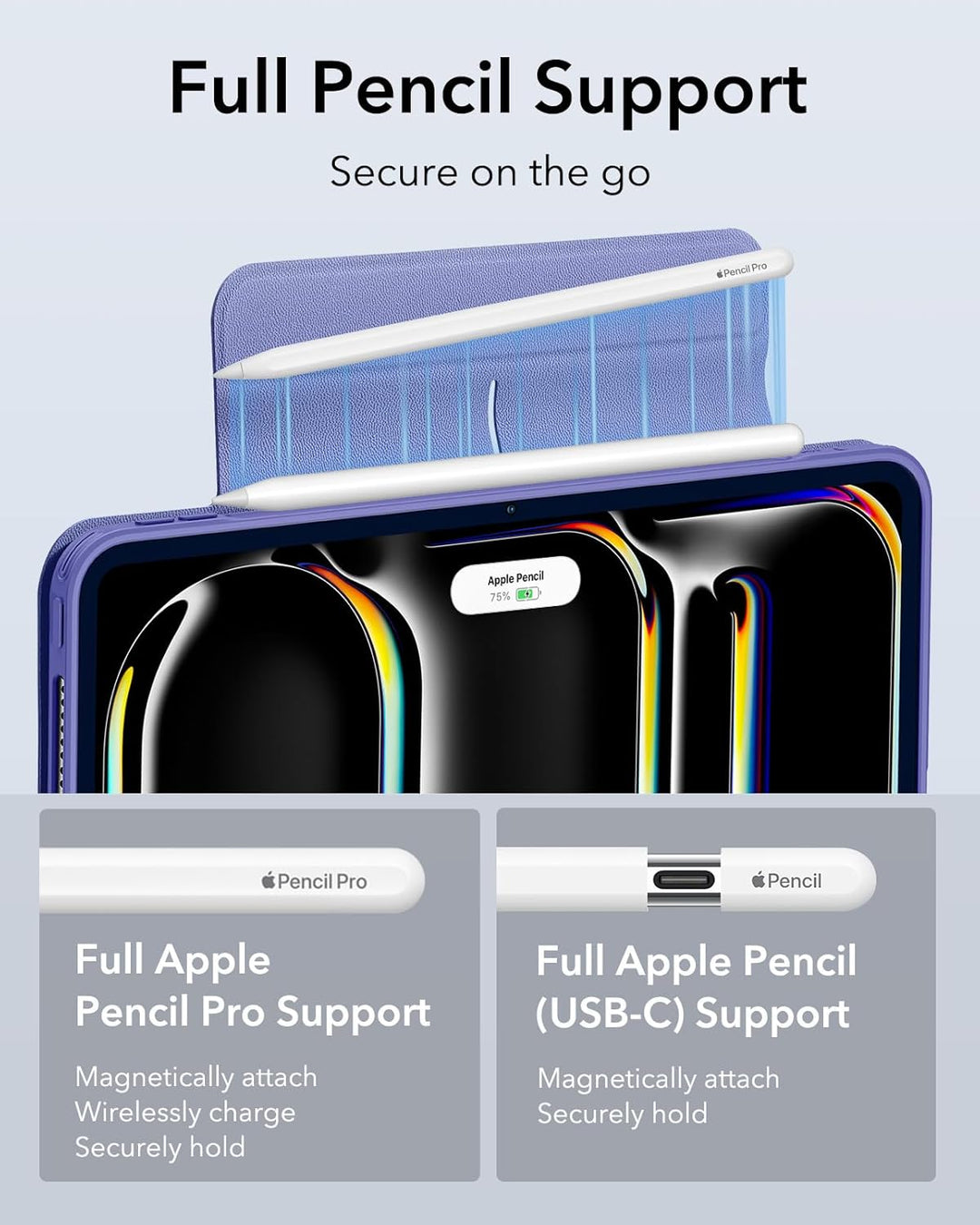 - Unterstützt Pencil Pro und Pencil (USB-C): Diese iPad Pro-Hülle unterstützt den Pencil Pro vollständig und verfügt über eine vertiefte Seitenrille zum magnetischen Laden und einen Magnetverschluss, um Ihren Pencil sicher zu halten