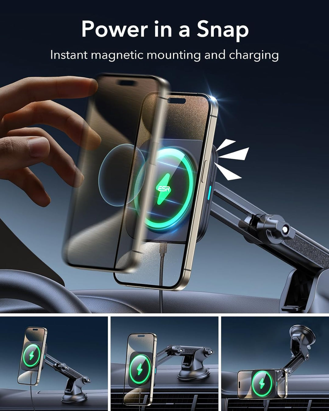 - Lieferumfang: Kabelloses HaloLock Armaturenbrett Ladegerät, Armaturenbretthalterung, Reinigungsset, 1 m langes USB-A zu USB-C Kabel und Handbuch; Kfz-Ladeadapter nicht im Lieferumfang enthalten, NUR kompatibel mit Handys der iPhone 15/14/13/12 Serie