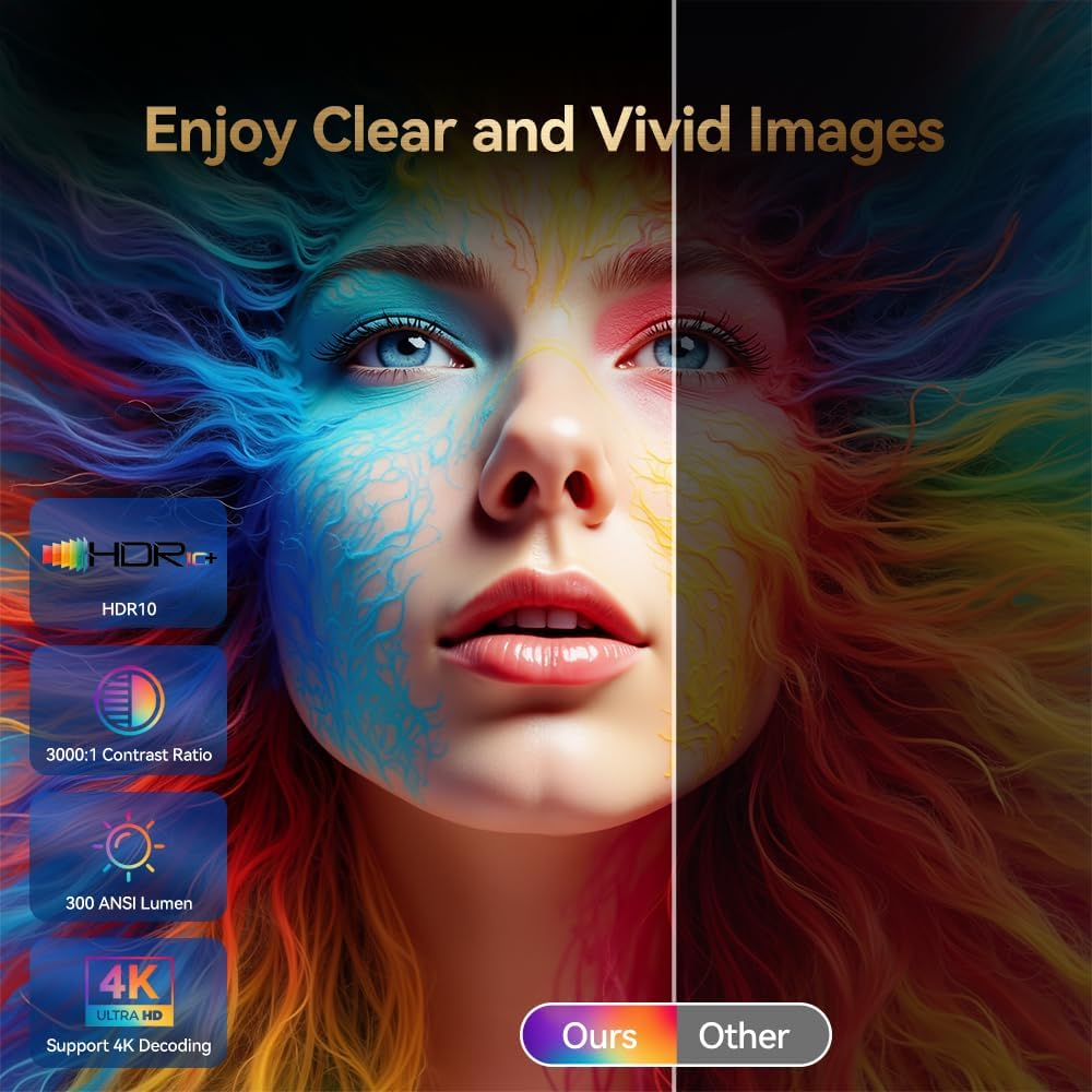 - LEISE, LANGLEBIG, IMMERSIV — Tauchen Sie ein in ununterbrochenen Sehgenuss mit ultra-leiser Betriebslautstärke von 24,5 dB, frei von störenden Geräuschinterferenzen. Mit dem fortschrittlichen Temperaturregelungsdesign des Projektors, das einen