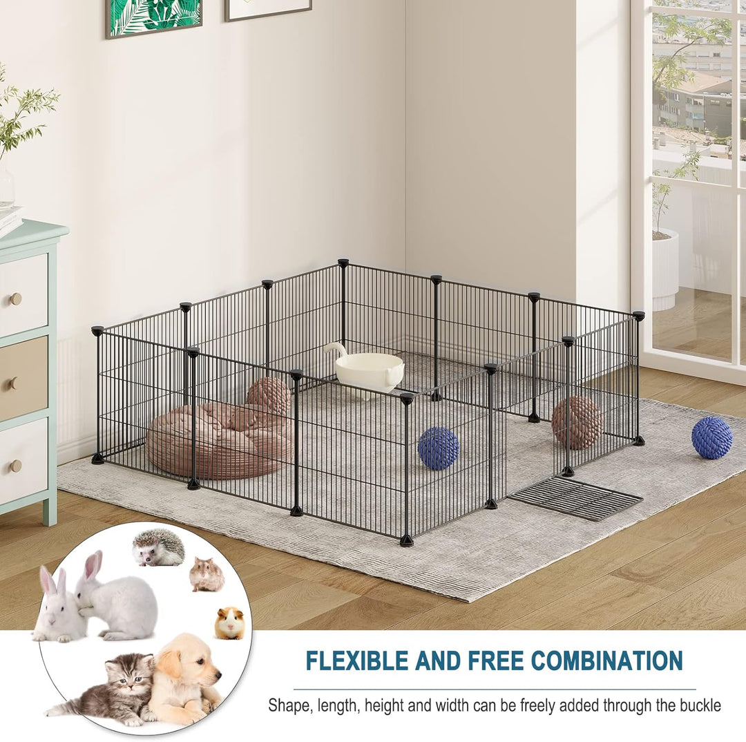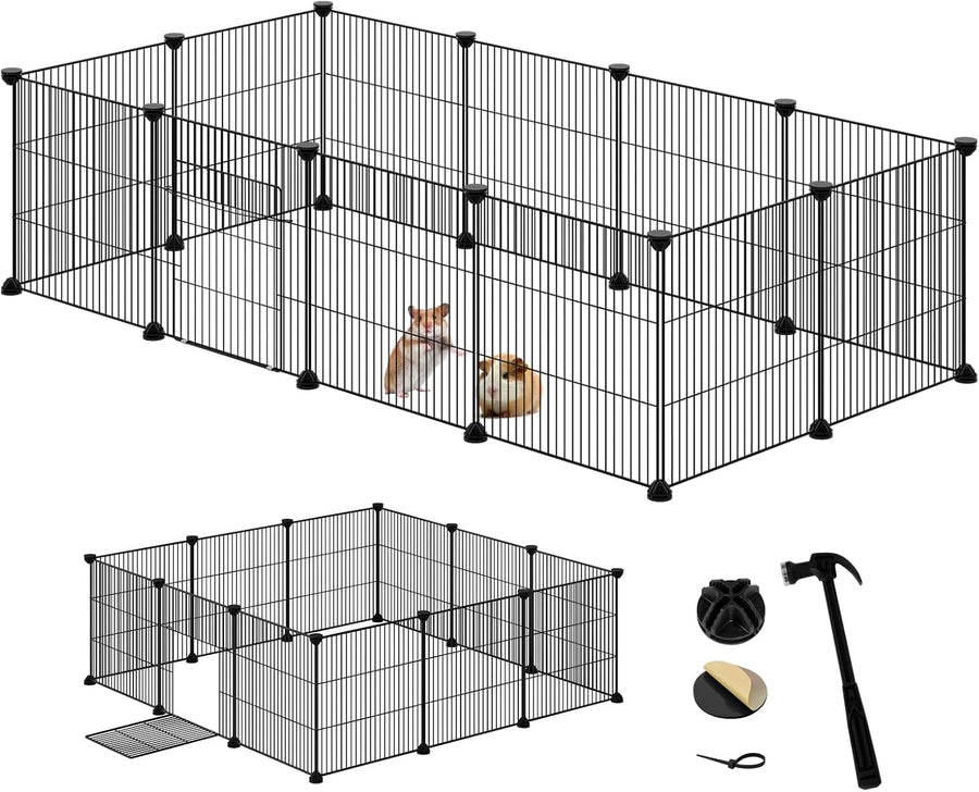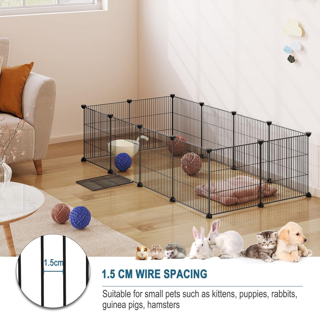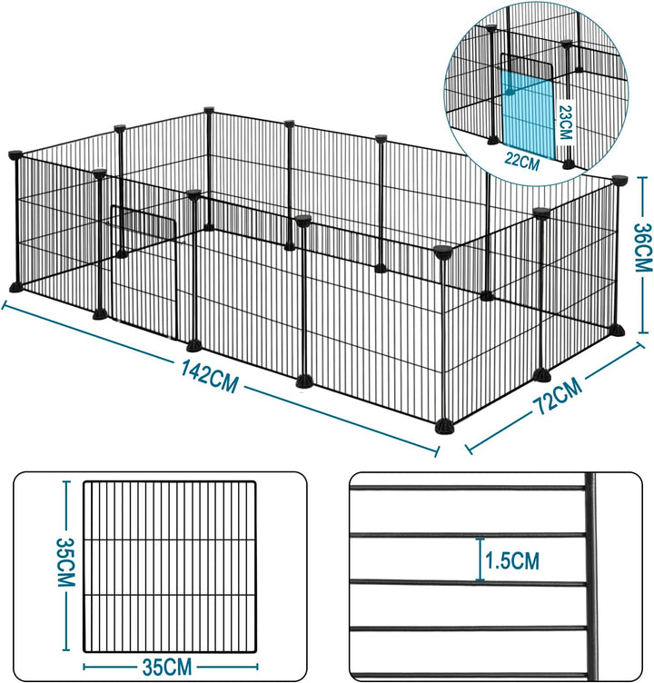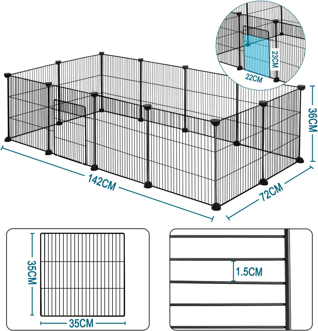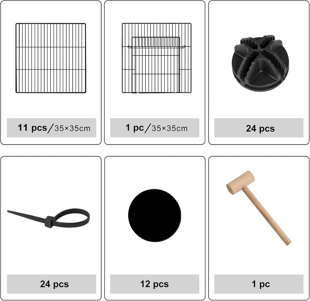 - Freigehege aus Metallgitter: Mit einem Gitterabstand von 1,5 cm eignet sich dieses Gittergehege für Kleintiere wie Hamster, Meerschweinchen, Chinchillas, Igel, Frettchen, Kaninchen, Zwergkaninchen, Kätzchen, Welpen usw. Das Gitter bietet eine freie