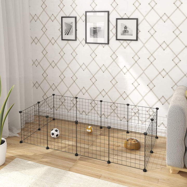 • Auslaufbereich DIY: In einem Set sind 12 Drahtplatten (35x35 cm) und 28 Verbinder enthalten. Sie können einen Welpenauslauf, einen Katzenkäfig oder einen Hasenzau in verschiedenen Formen oder Grössen mit einem oder mehreren Sets im Innenraum machen