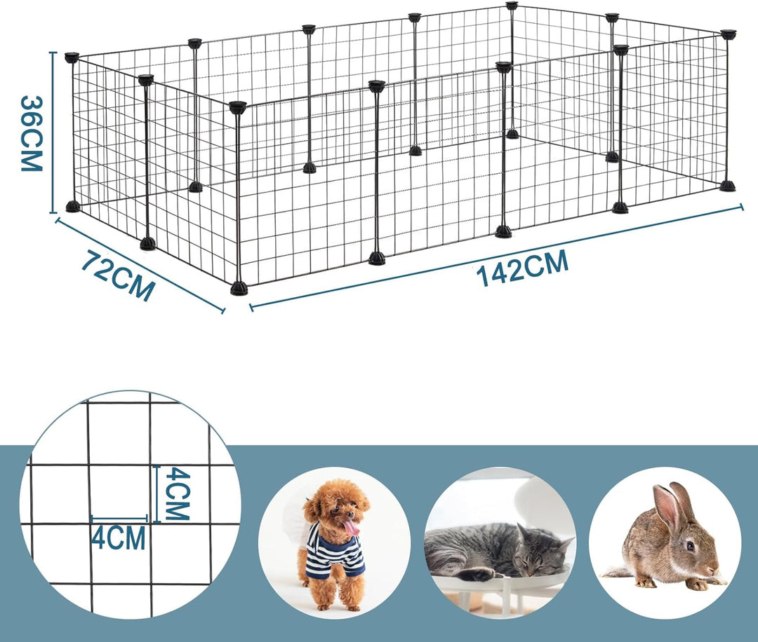 • Geeignet für kleine Haustiere: Der Drahtabstand beträgt 4,0 cm, was geeignet für Kaninchen, Zwergkaninchen, Kätzchen oder Welpen ist. Für Haustiere mit gutem Sprungvermögen wird eine Höhe über 70 cm empfohlen