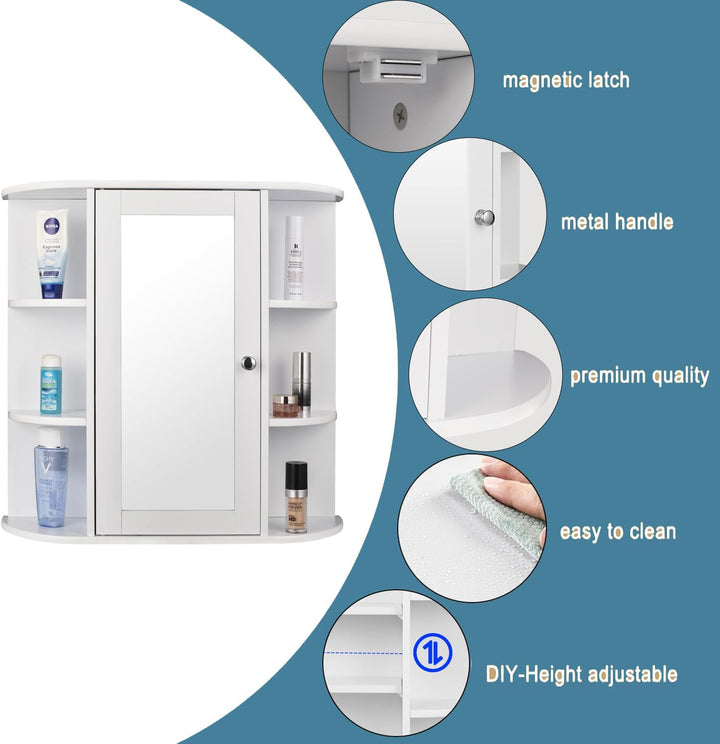 • ✅[Spiegelschrank mit verstellbaren Einlegeboden]: Die 2 internen Regale sind um 6,4 cm verstellbar, um die Alltagsgegenstände aufzubewahren. Die Tür mit Griff lässt sich leicht nutzen und hält die Dinge sicher und sauber von Insekten und