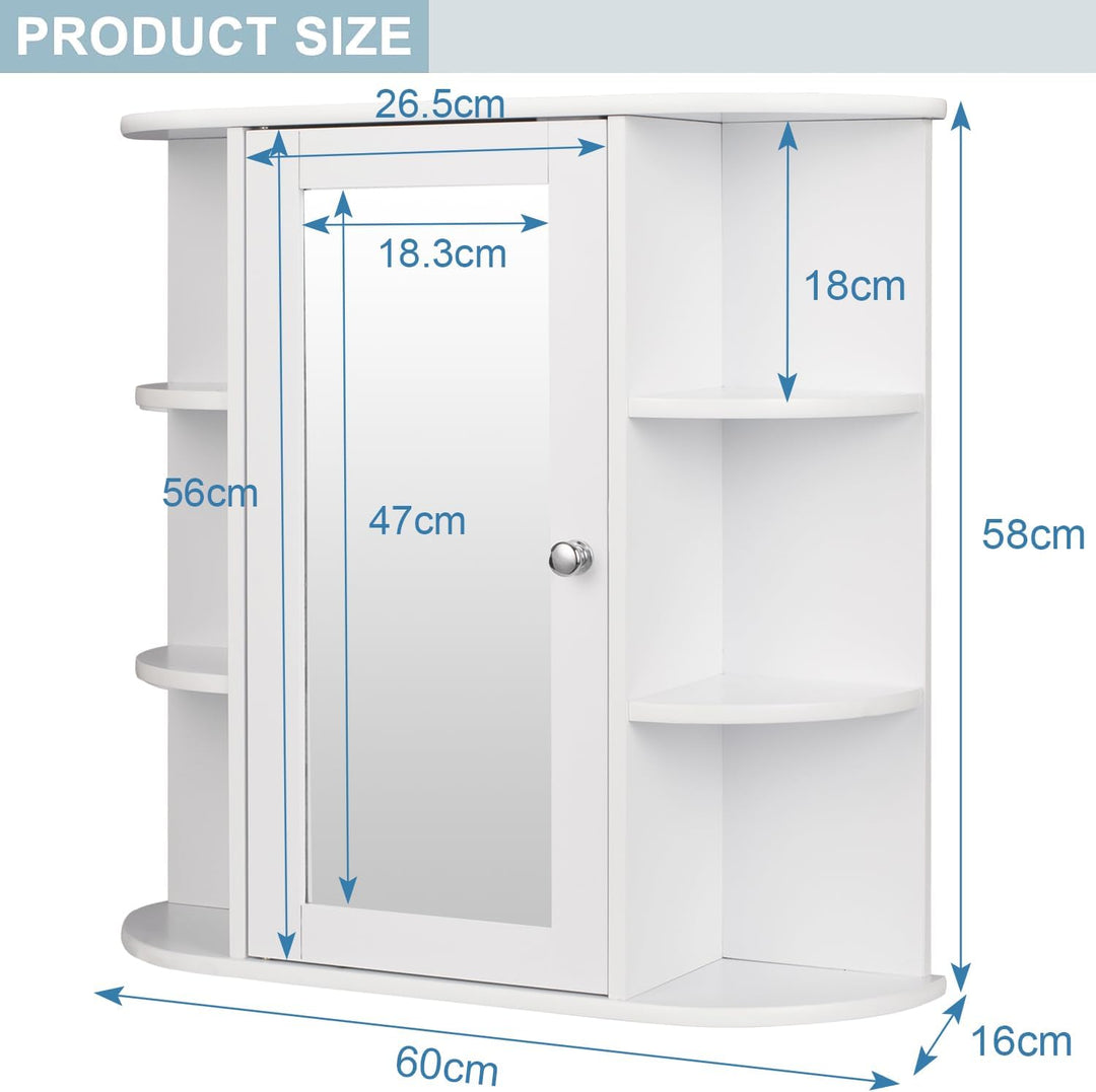 • ✅[Schrank mit viel Stauraum]: Der kleine Schrank misst 60x58x16 cm und hat 3 Einlegeböden (14x18 cm) auf jeder Seite und 3 hinter der Spiegeltür (Höhen: 20; 11; 21 cm). Grosser Stauraum kann so viele Badeutensilien wie möglich aufbewahren