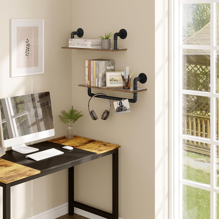 - Industrieller Retro-Stil: Mit seinem Regalbrett mit Vintage-Holzmaserung und den mattschwarzen Metall-Wasserpfeifen verbindet das Hängeregal den Vintage- und den Industriestil zu einer klassischen, einfachen, stilvollen und perfekten Wanddekoration