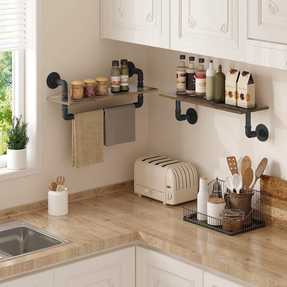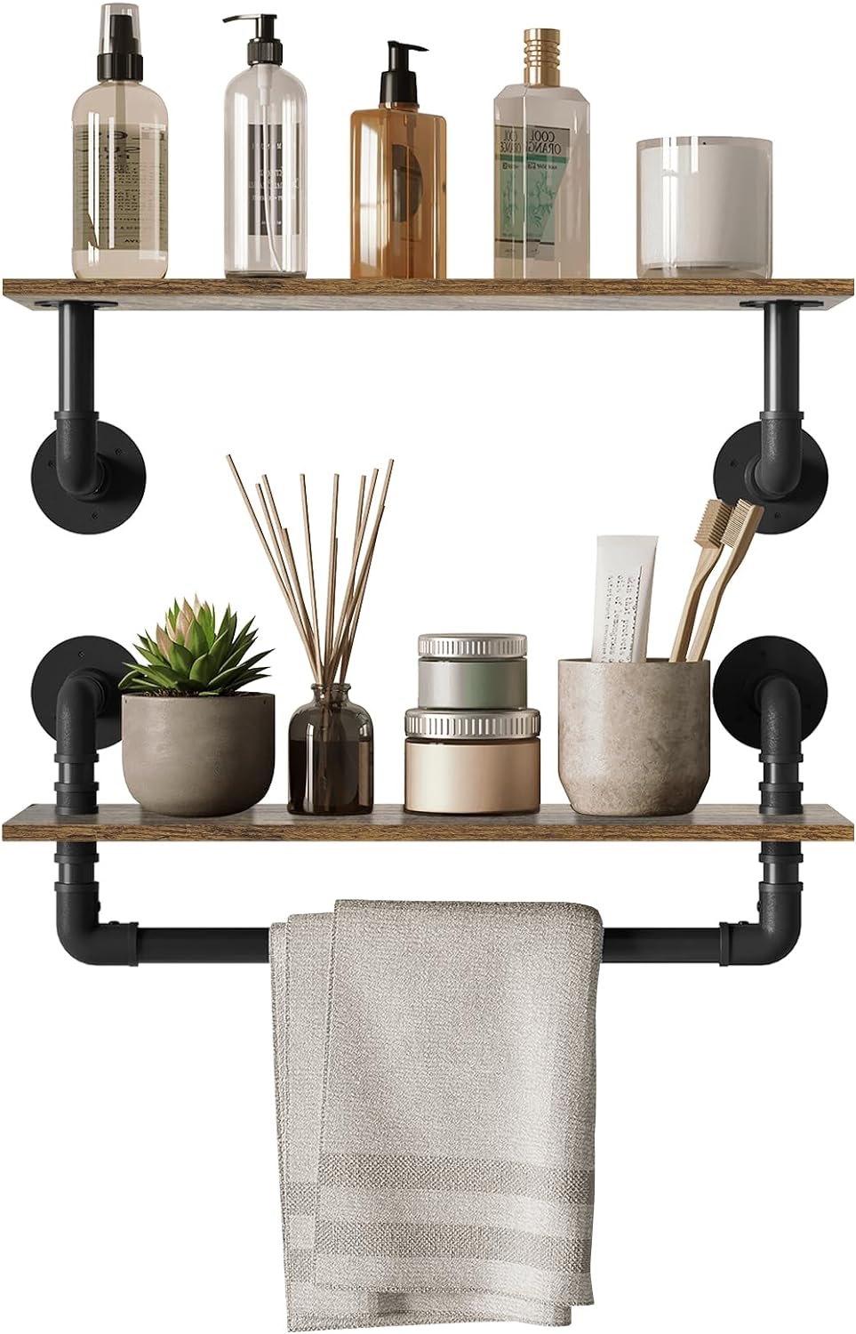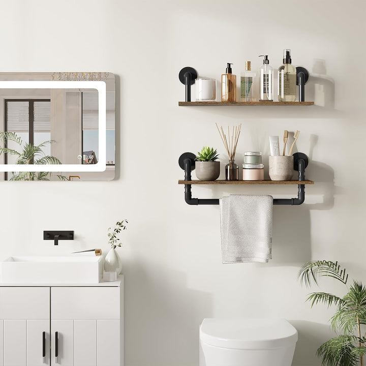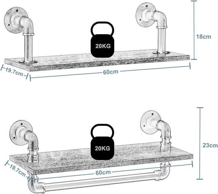 - 2er-Set: Die Grösse jedes Wandbretts beträgt 60x20 cm und die Tragfähigkeit beträgt bis zu 20 kg. Es kann Bilderrahmen, Ornamente, Gewürzflaschen, Düfte usw. tragen. Eines der Wandregale hat eine Stange zum Aufhängen von Handtüchern, Kopfhörern