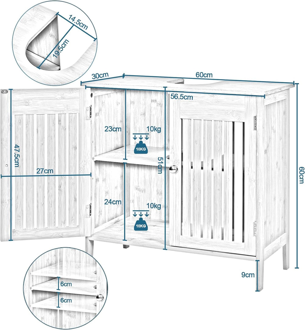 - ✅[Grosser Stauraum & Siphonausschnitt]: Der Waschbeckenunterschrank von 60x60x30 cm optimiert die Platzausnutzung im Badezimmer, bietet auch geräumigen Stauraum. Die 14.5x19.5 cm grosse Siphonöffnung ist für die meisten Waschbecken geeignet
