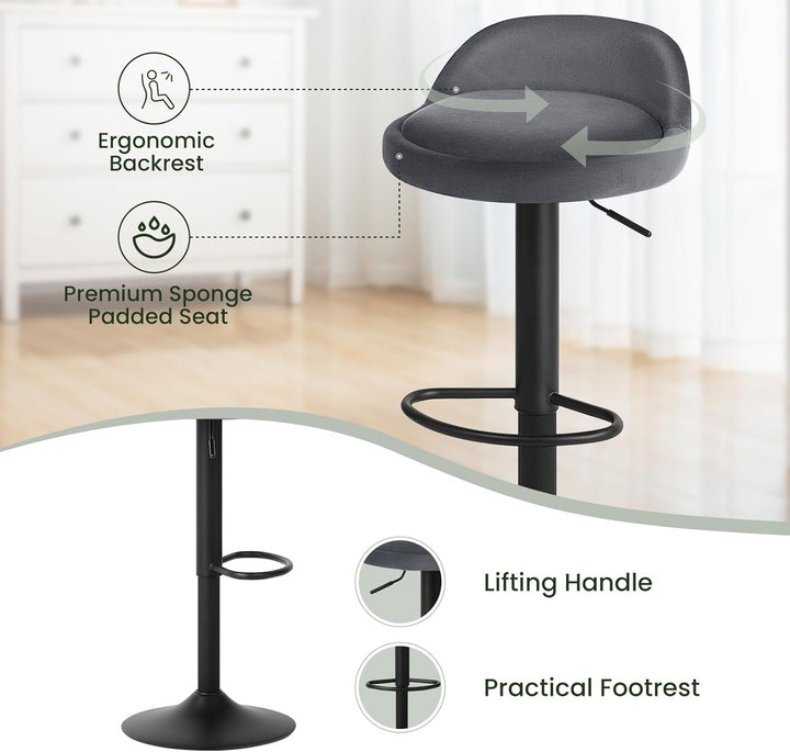 - Mehr Komfort für Sie: Der Barhocker mit Samtbezug ist glatt, glänzend und verblasst nicht. Mit hochdichtem Schaumstoff gepolstert, ist er bequem, weich und verformt sich nicht leicht. Die ergonomische niedrige Rückenlehne stützt Ihre Taille und die