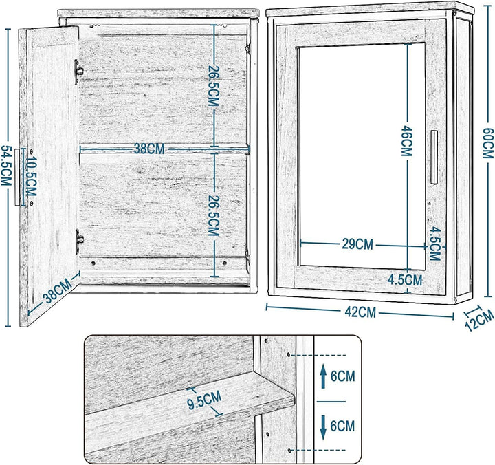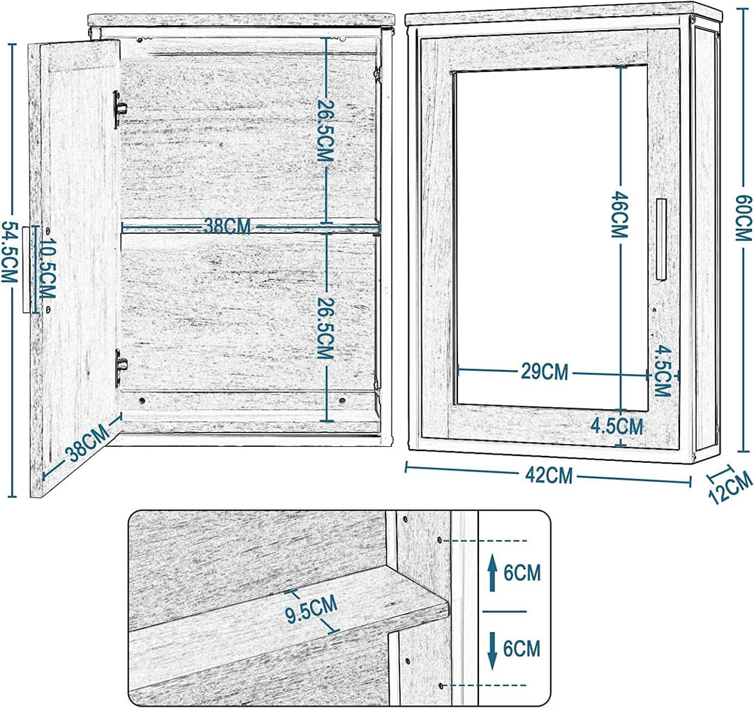 • Der Spiegelschrank ist aus hochwertigen, robusten und stabilMDF-Platten hergestellt. Und die Schaniere sind aus rostlos Metall.