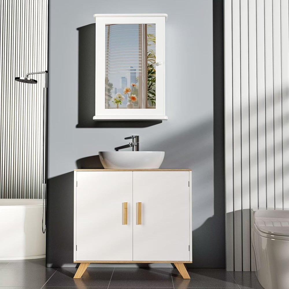 EUGAD Spiegelschrank für Badzimmer Hängeschrank Badschrank Spiegel mit Ablage Schminkschrank aus Hol