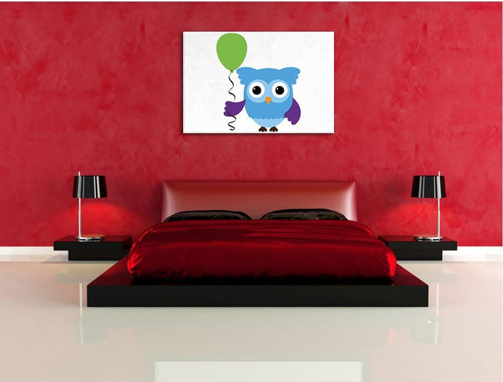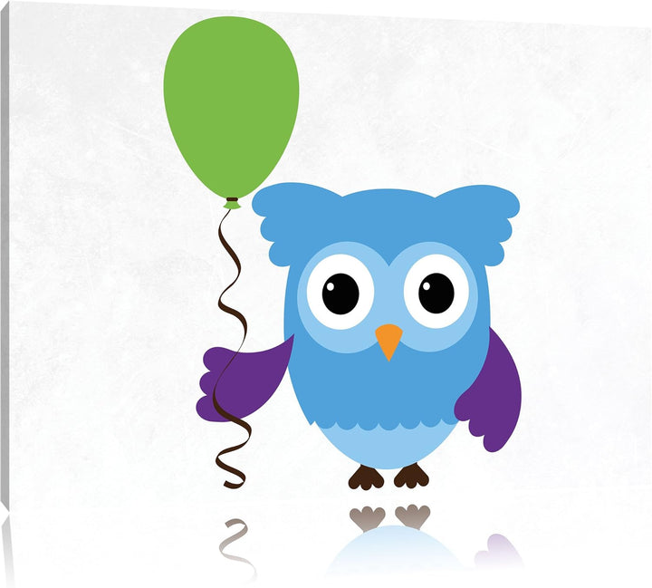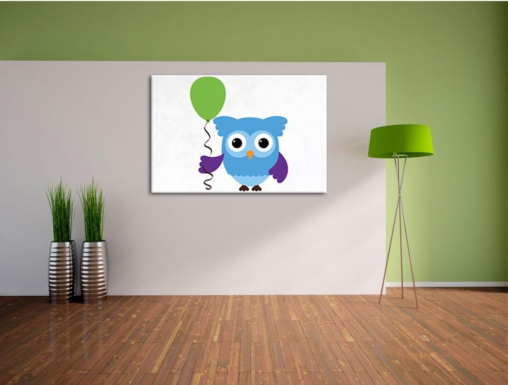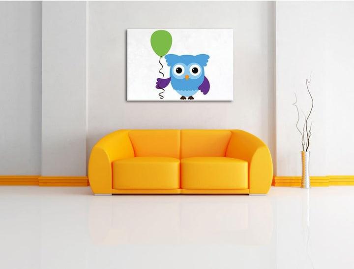 Eule mit Ballon weiss, Format: 100x70 auf Leinwand, XXL riesige Bilder fertig gerahmt mit Keilrahmen