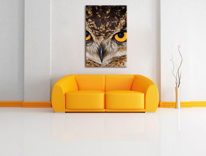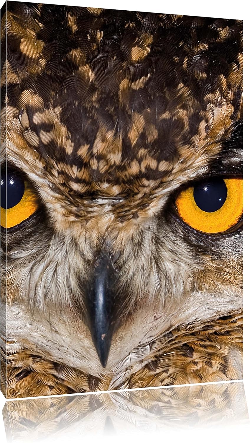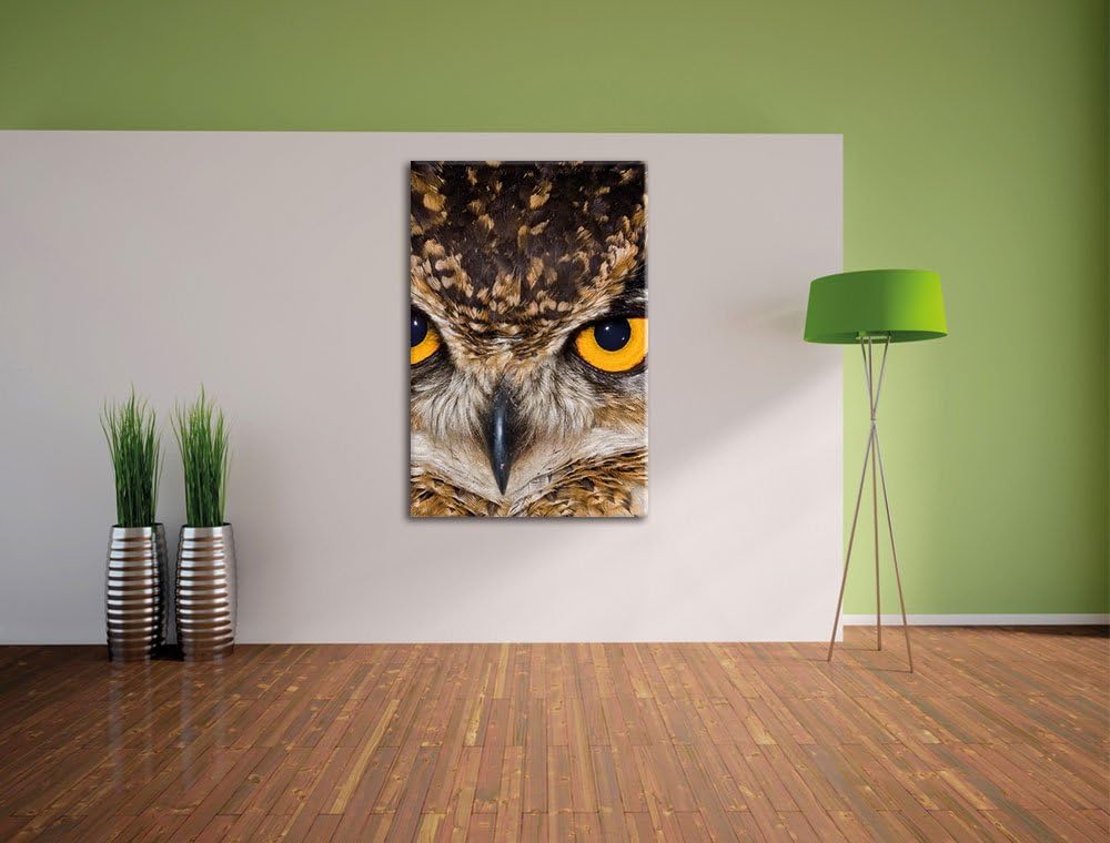 Eule mit gelben Augen, Format: 100x70 auf Leinwand, XXL riesige Bilder fertig gerahmt mit Keilrahmen