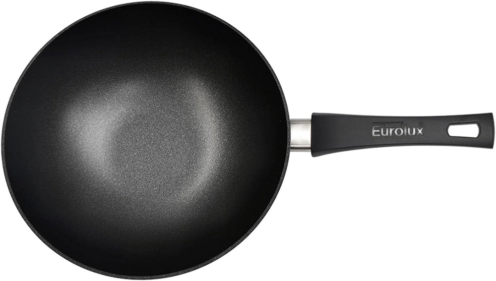 - Der grosse runde gewölbte Stielwok Ø 30 cm besteht aus bis 240°C hitzebeständigen Aluguss "Made in Germany" mit abriebfester Antihaftbeschichtung und ist ein vielseitiger Eyecatcher in jeder Küche