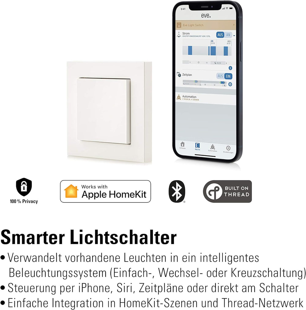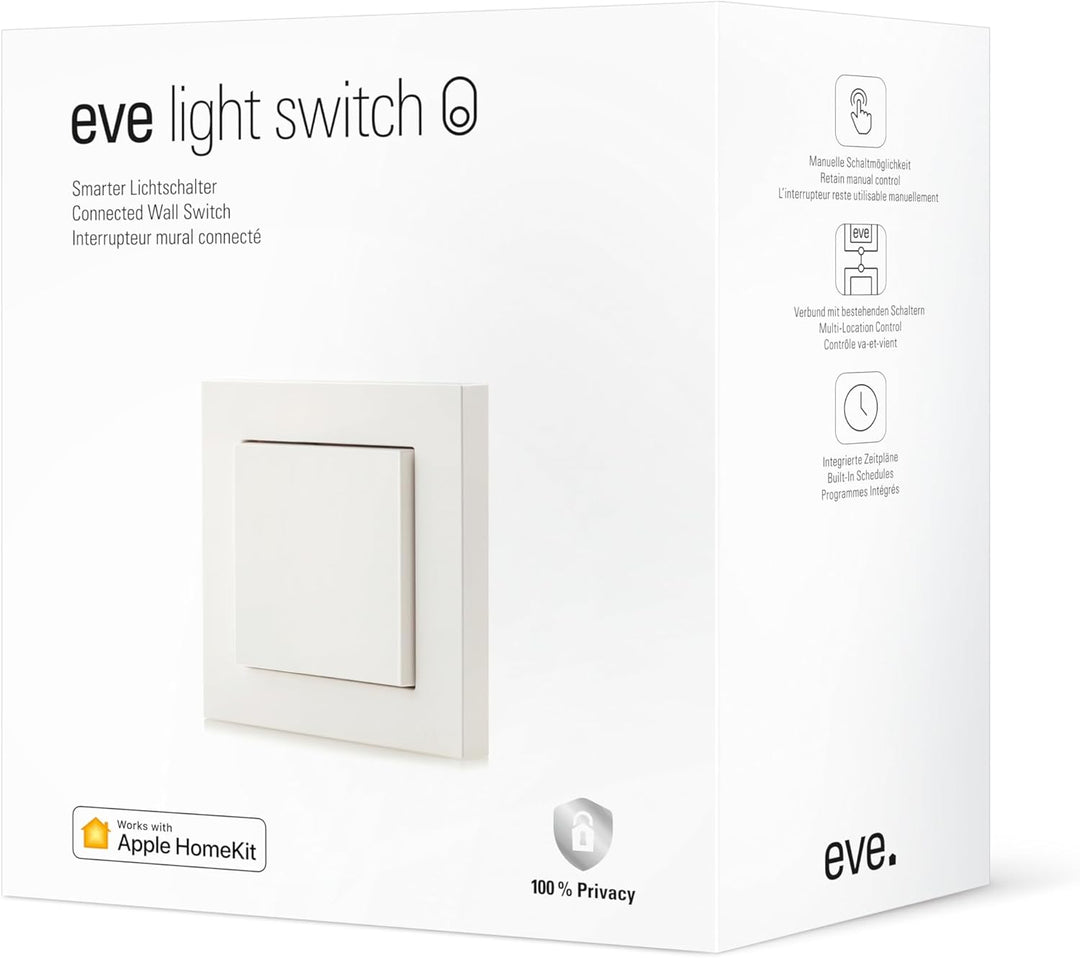 - Eve Light Switch erfordert ein iPhone oder iPad mit der neuesten Version von iOS/iPadOS