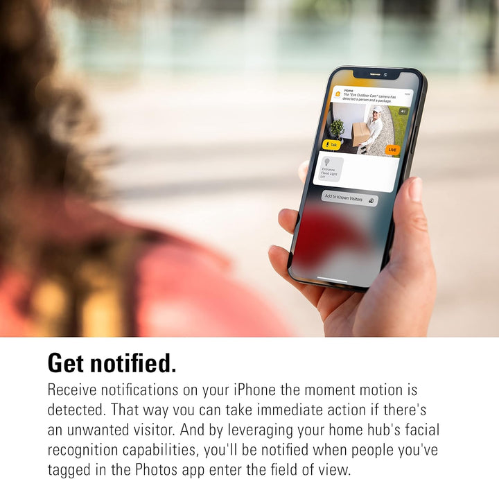 • Behalten Sie mit Eve Outdoor Cam Ihr Zuhause jederzeit im Blick, und lassen Sie sich auf iPhone/iPad/Apple Watch benachrichtigen, wenn sich etwas ereignet