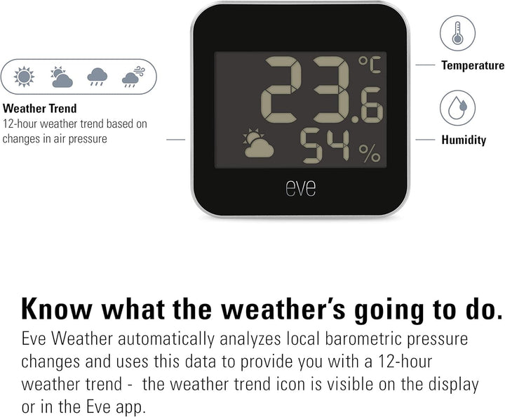 - Produkt 2: Eve Weather erfordert ein iPhone oder iPad mit der neuesten Version von iOS/iPadOS