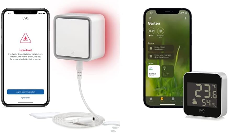 - Produkt 1: Eve Water Guard erfordert ein iPhone oder iPad mit der neuesten Version von iOS/iPadOS