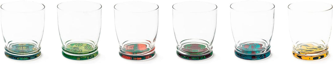 - Unser transparentes Set mit modernem Design verfügt über ein farbenfrohes und lebendiges Dekor auf der Unterseite, das für jedes Glas anders ist und jedem Schluck einen Hauch von Lebendigkeit und Stil verleiht.