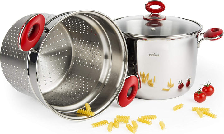 - Topf mit Sieb Kochen und Abtropfen – zwei Schritte in einem für noch einfacheres und sichereres Backen des mediterranen Tellers. Und das nicht nur.